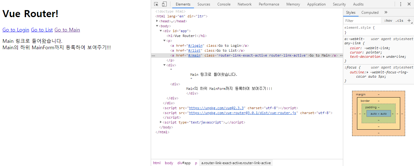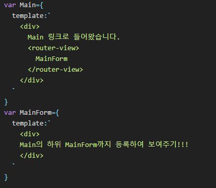이 때, <router-view> 코드를 이용하여 "MainForm" 컴포넌트를 표시하겠다!