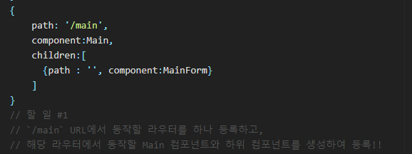 : "/main" URL로 들어온다면 "Main"이라는 컴포넌트를 등록하고,
